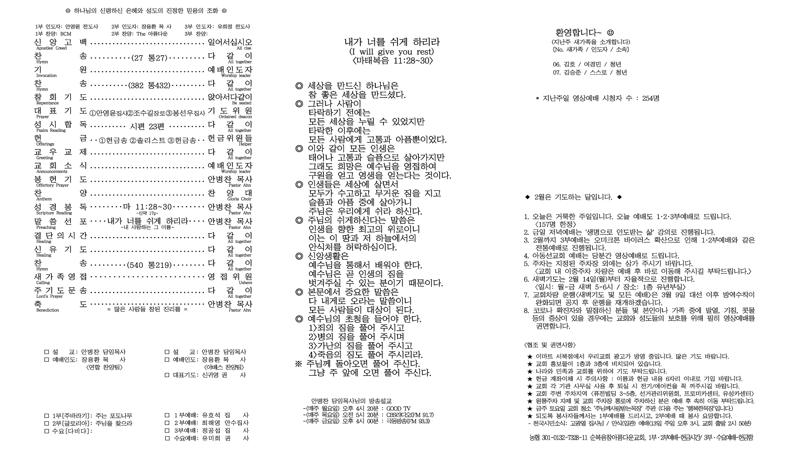 | [주 보|교회소식] 2022.02.27 (0) | 2022.02.26 |