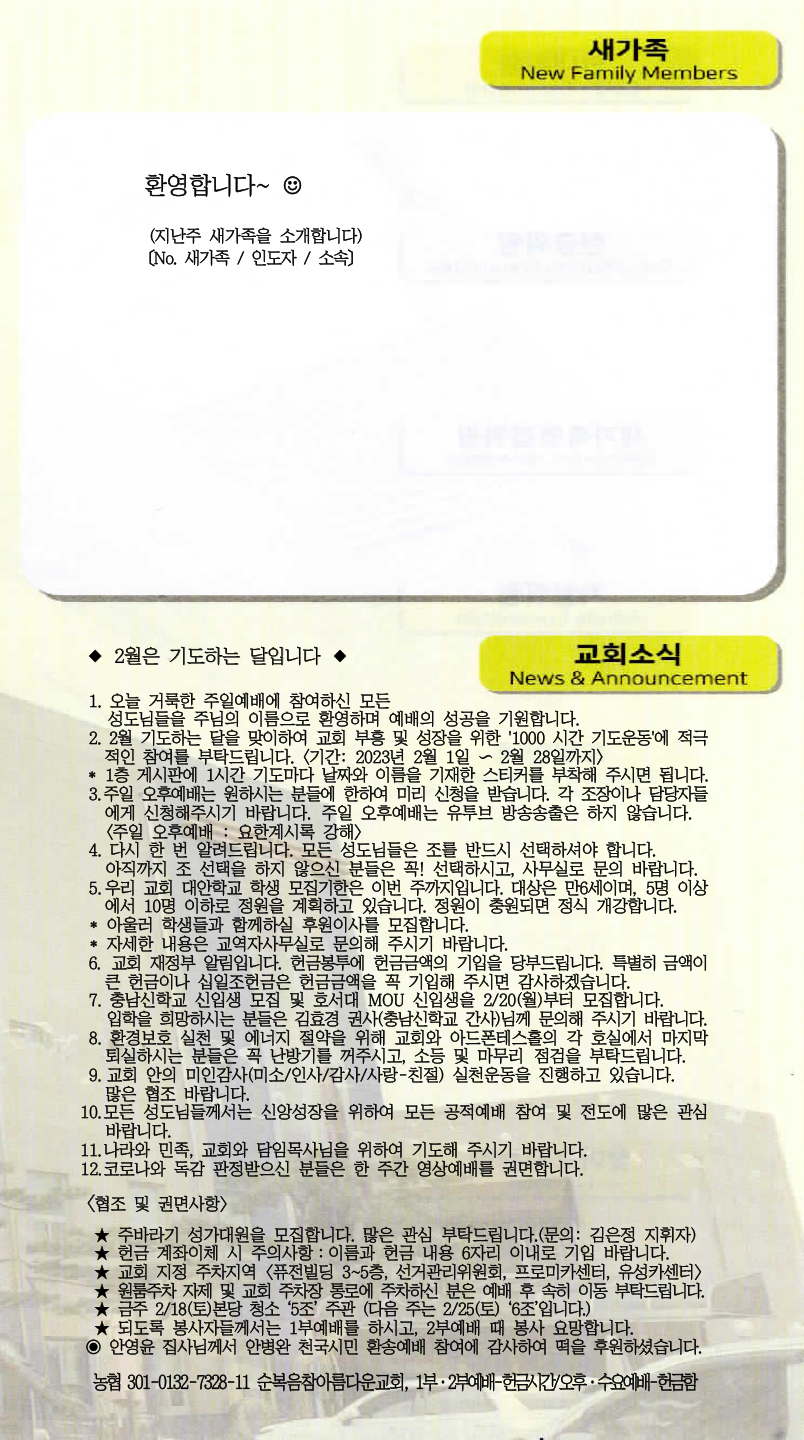 | [주 보|교회소식] 2023.02.26 (0) | 2023.02.25 |