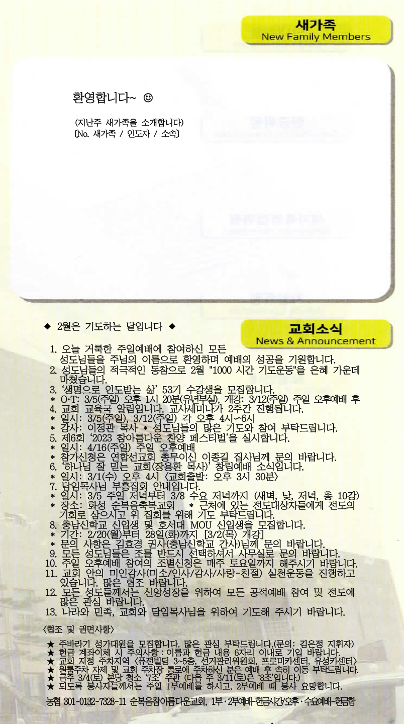 [주 보|교회소식] 2023.02.26