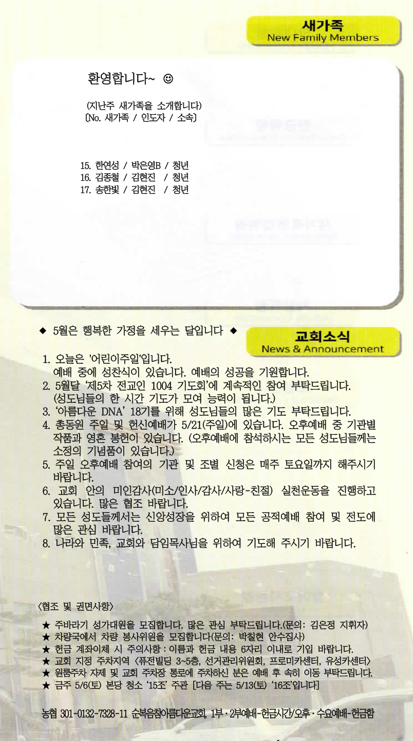 [주 보|교회소식] 2023.05.07