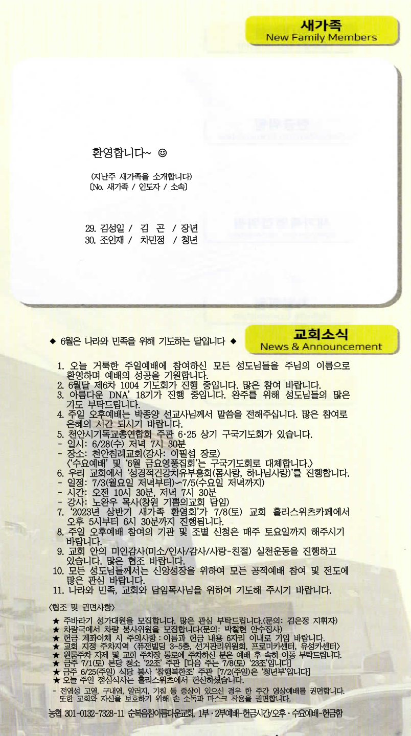| [주 보|교회소식] 2023.06.18 (0) | 2023.06.17 |