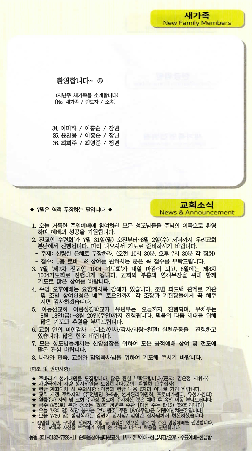 | [주 보|교회소식] 2023.07.16 (0) | 2023.07.15 |