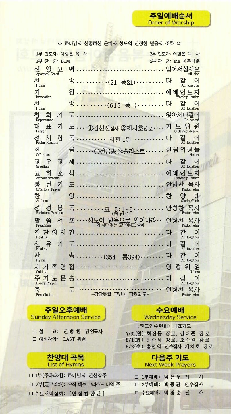 | [주 보|교회소식] 2023.08.06 (0) | 2023.08.05 |