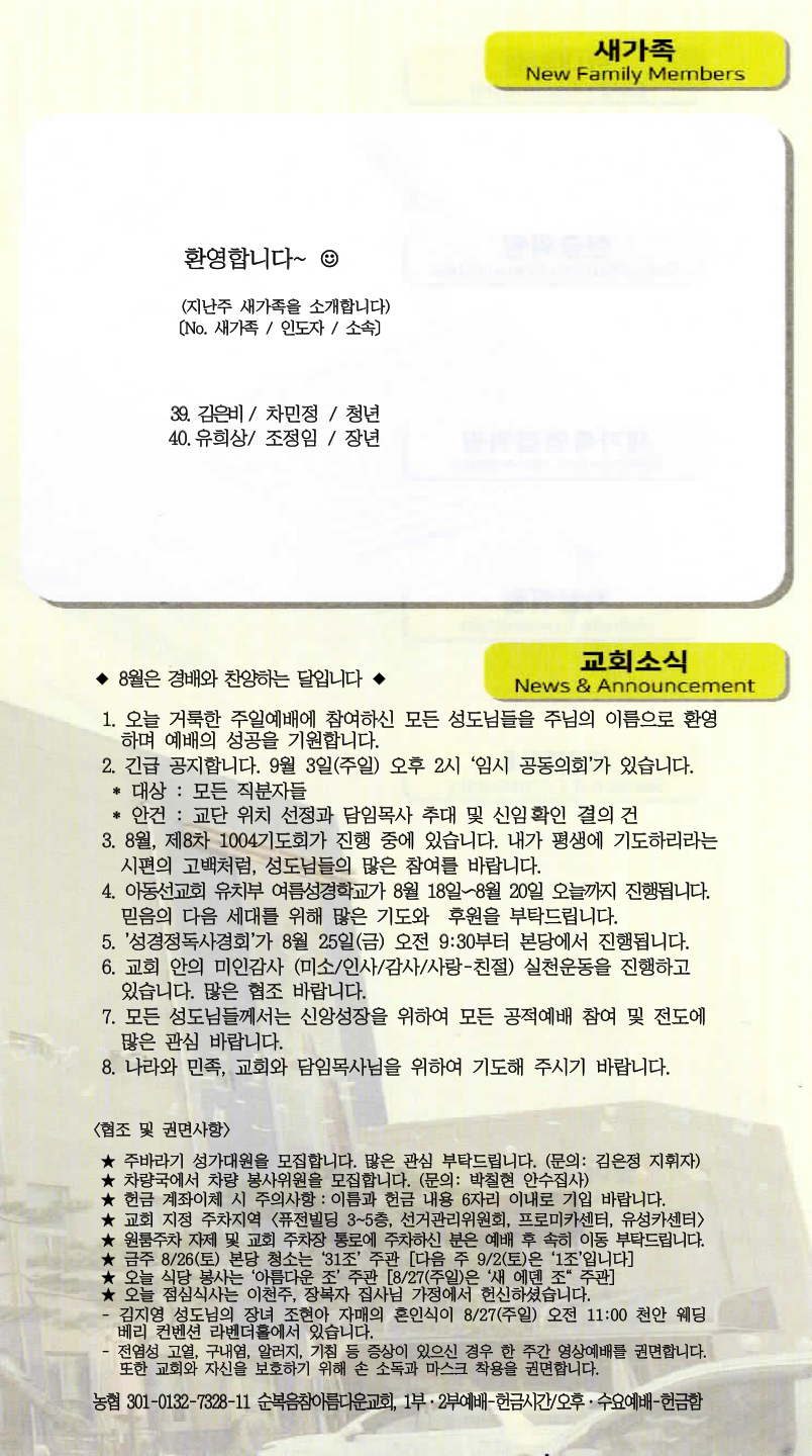 | [주 보|교회소식] 2023.08.06 (0) | 2023.08.05 |