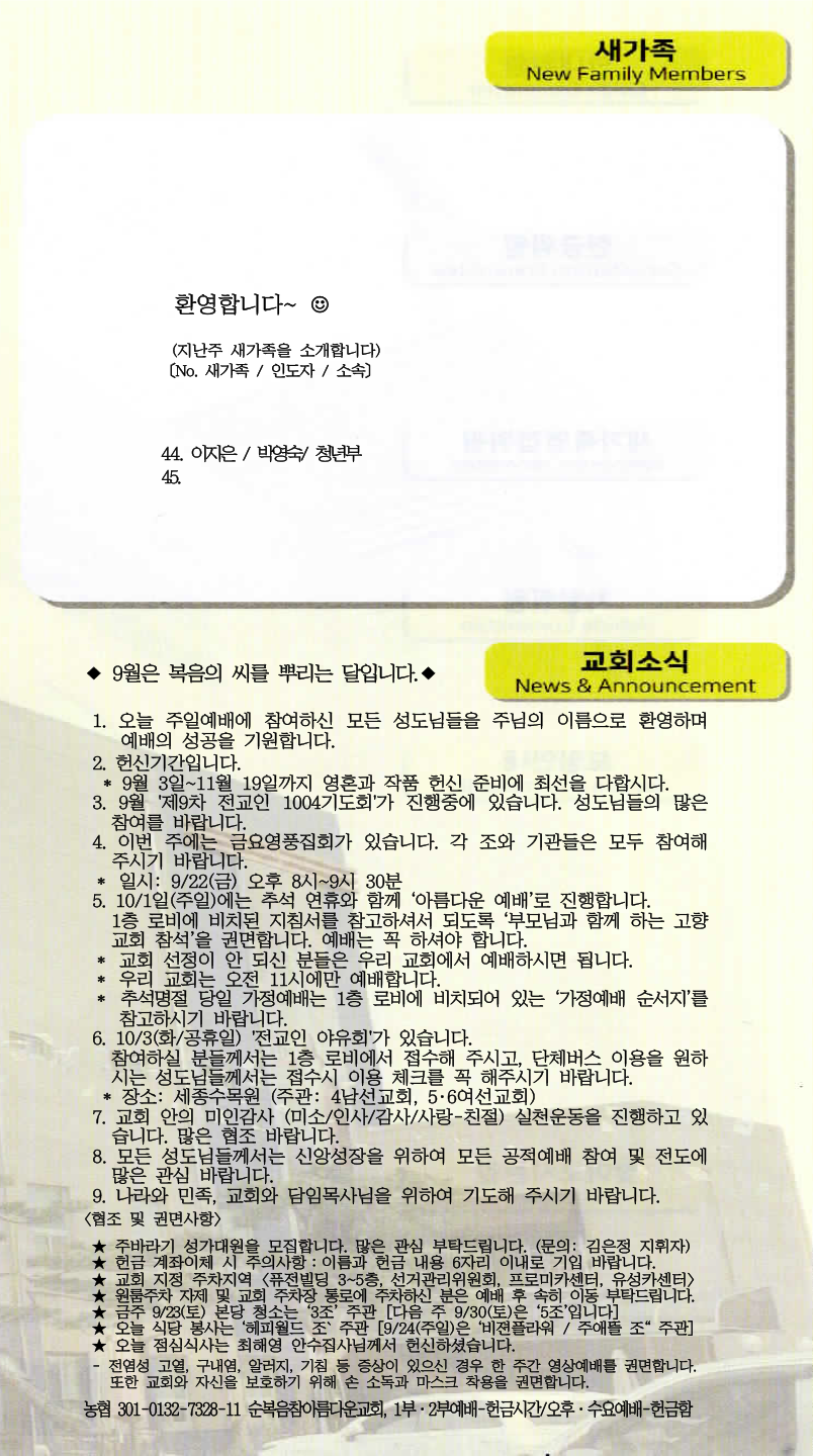 | [주 보|교회소식] 2023.09.24 (0) | 2023.09.23 |
