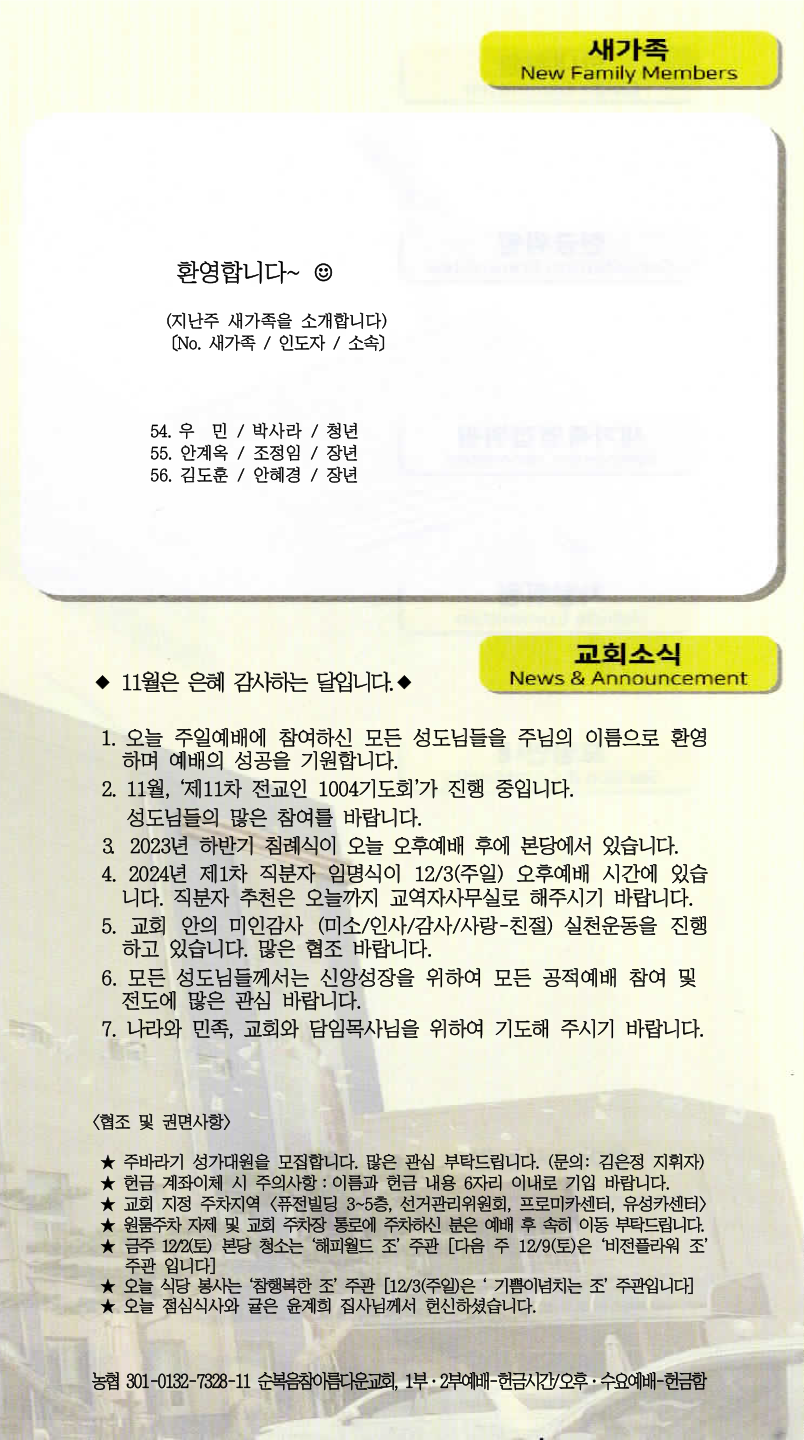 | [주 보|교회소식] 2023.11.19 (0) | 2023.11.18 |