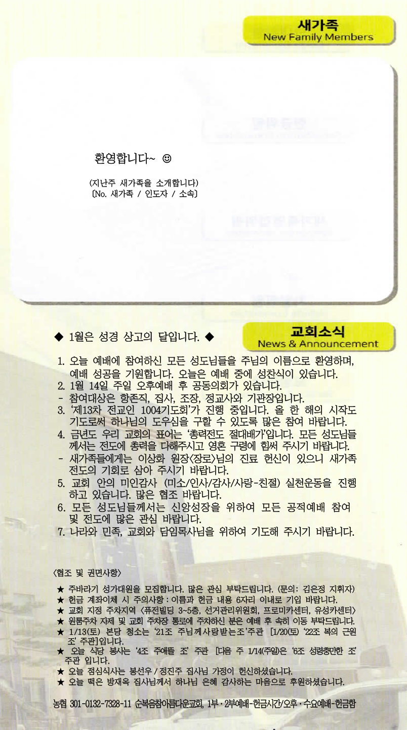 | [주 보|교회소식] 2024.01.14 (0) | 2024.01.13 |