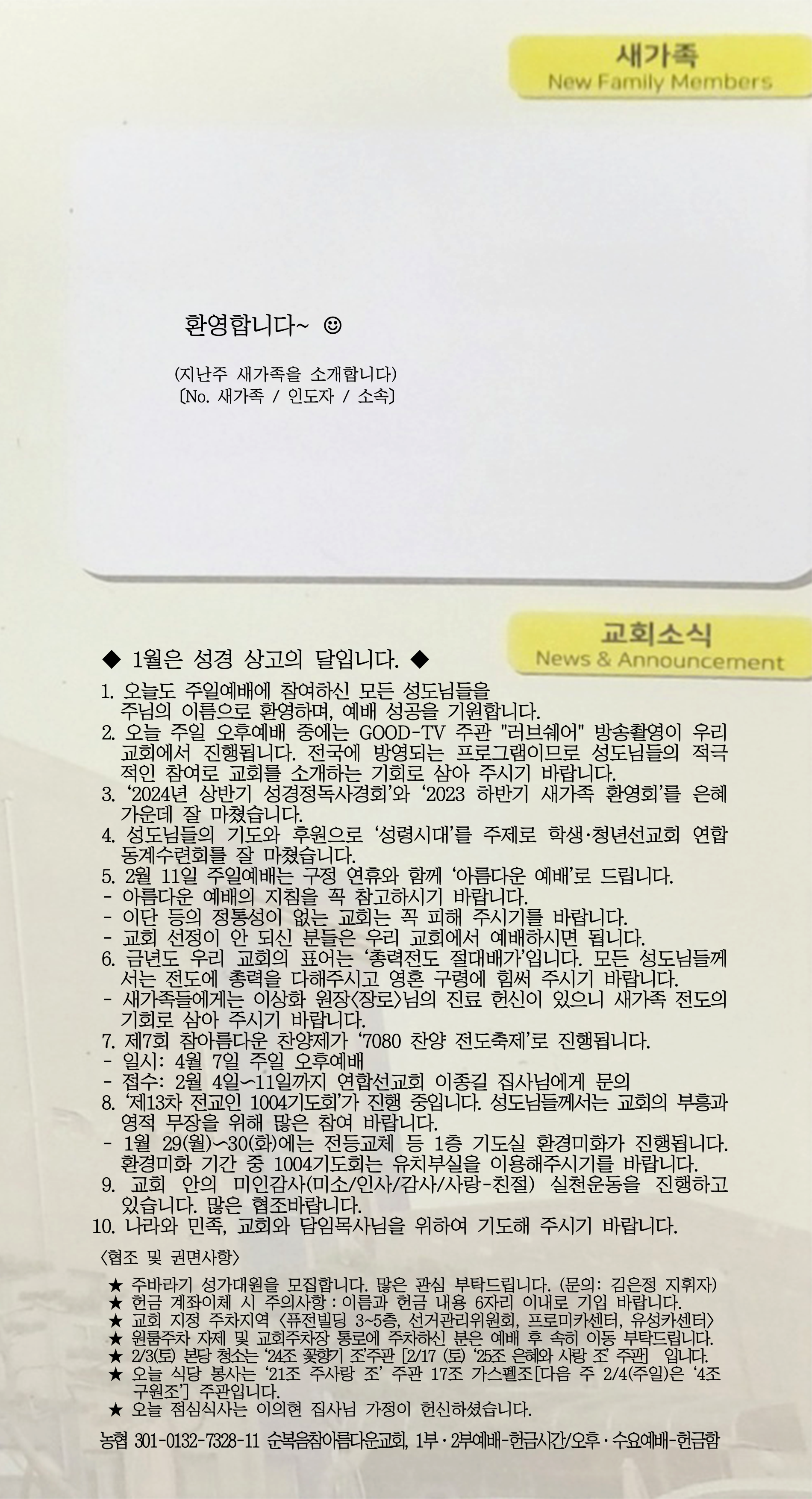 | [주 보|교회소식] 2024.02.04 (0) | 2024.02.03 |