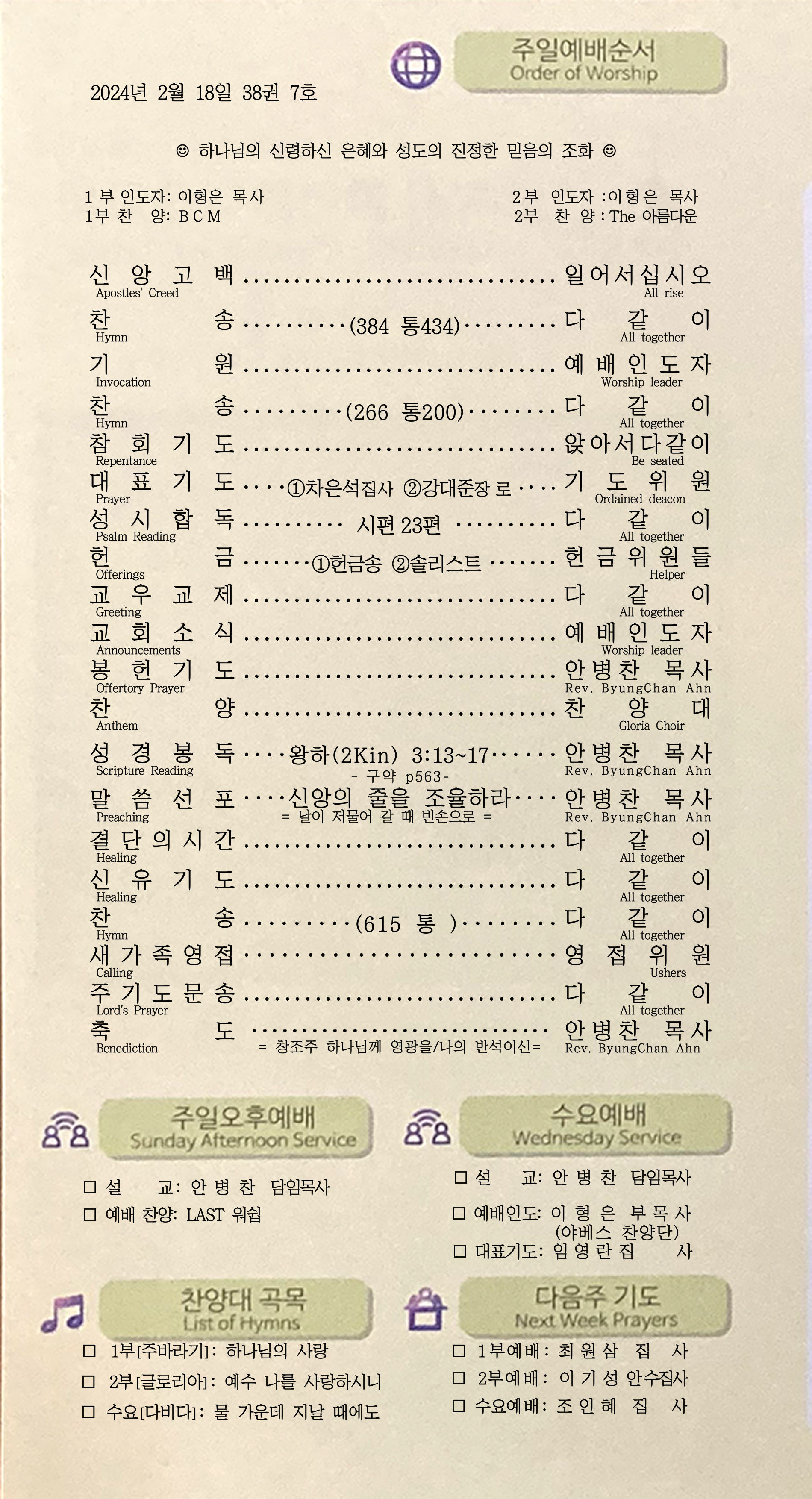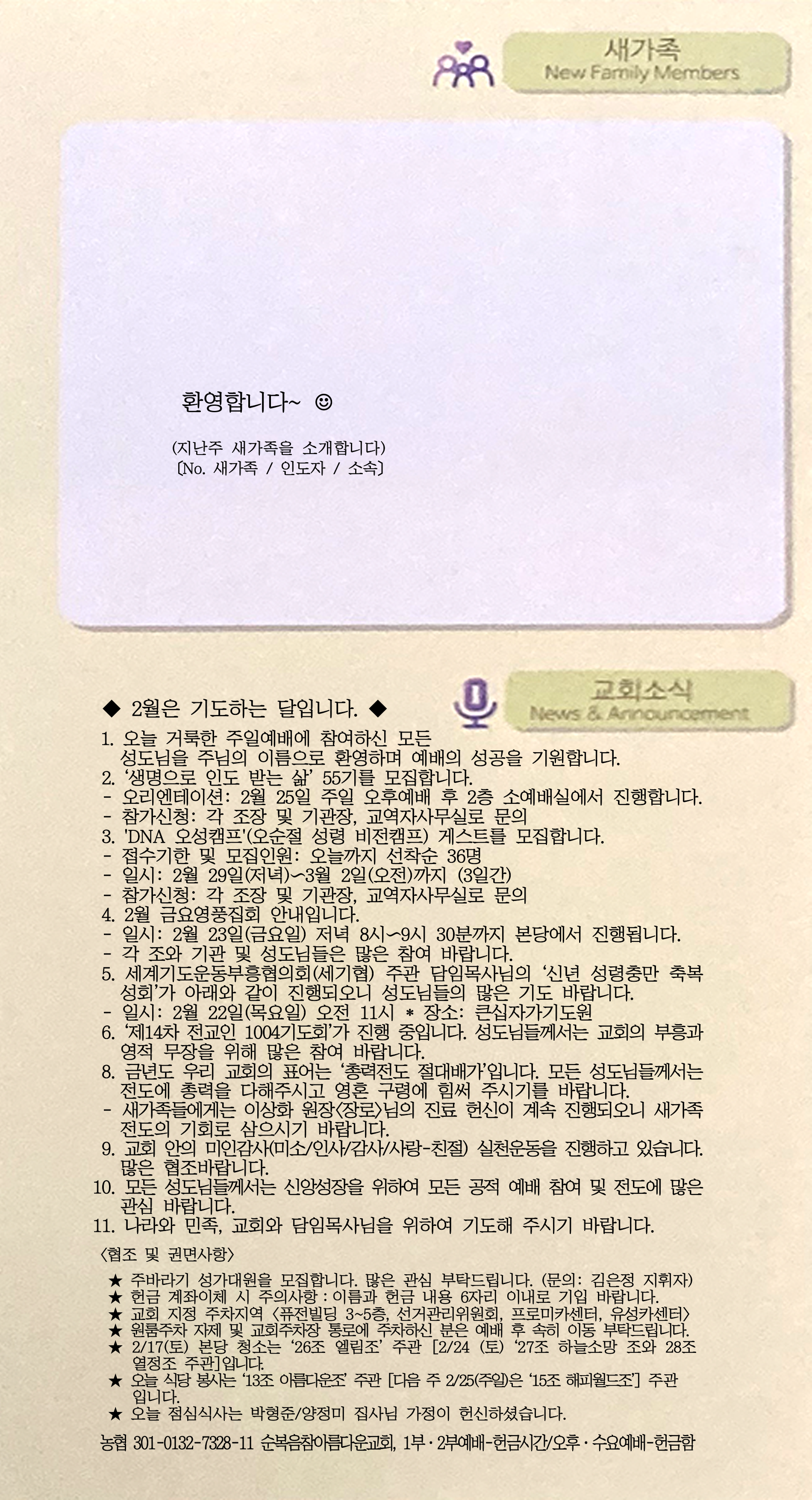 | [주 보|교회소식] 2024.02.11 (0) | 2024.02.10 |