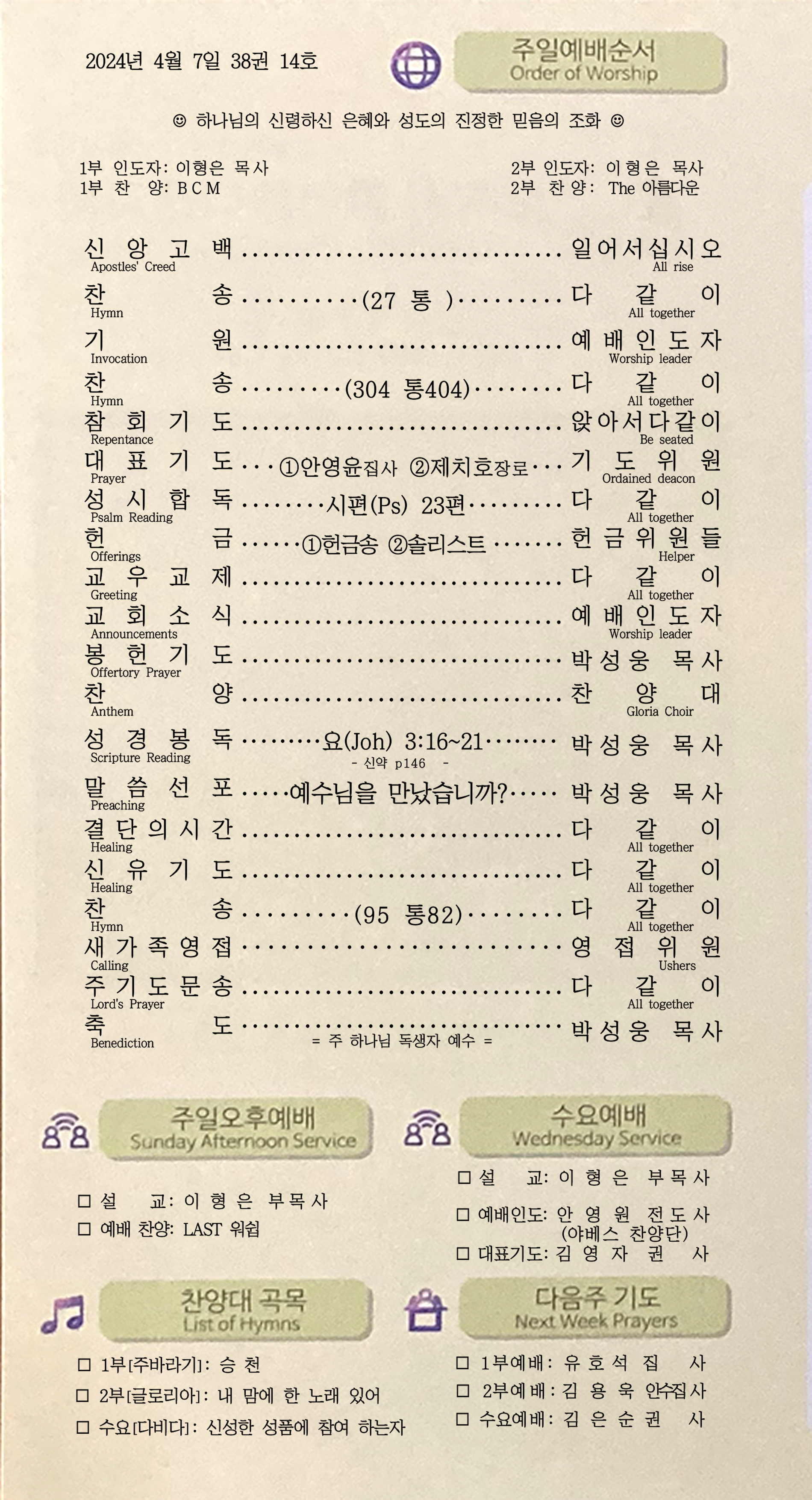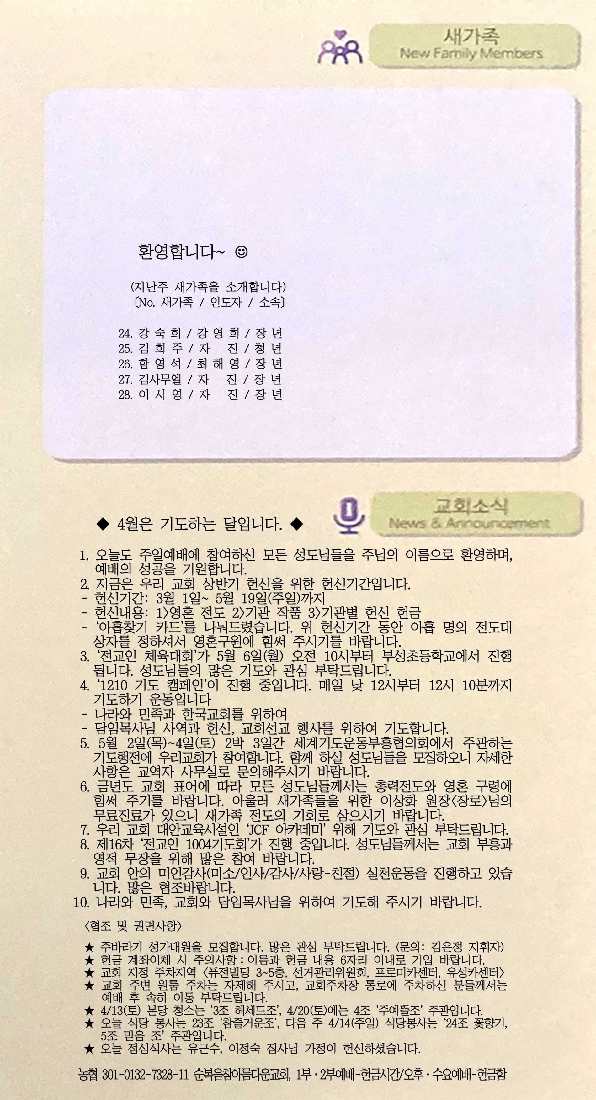 | [주 보|교회소식] 2024.04.20 (0) | 2024.04.20 |