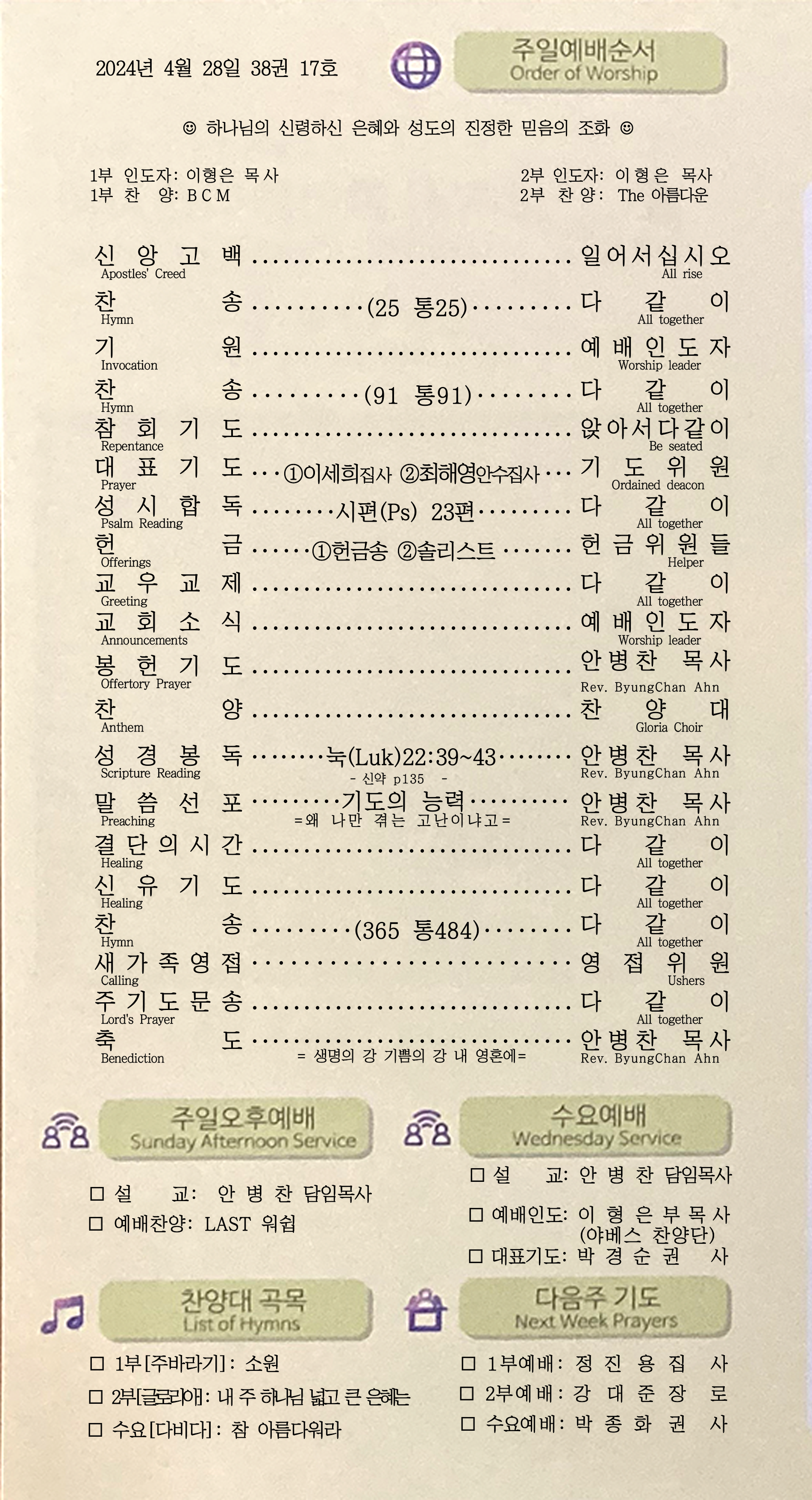 [주 보|교회소식] 2024.04.28