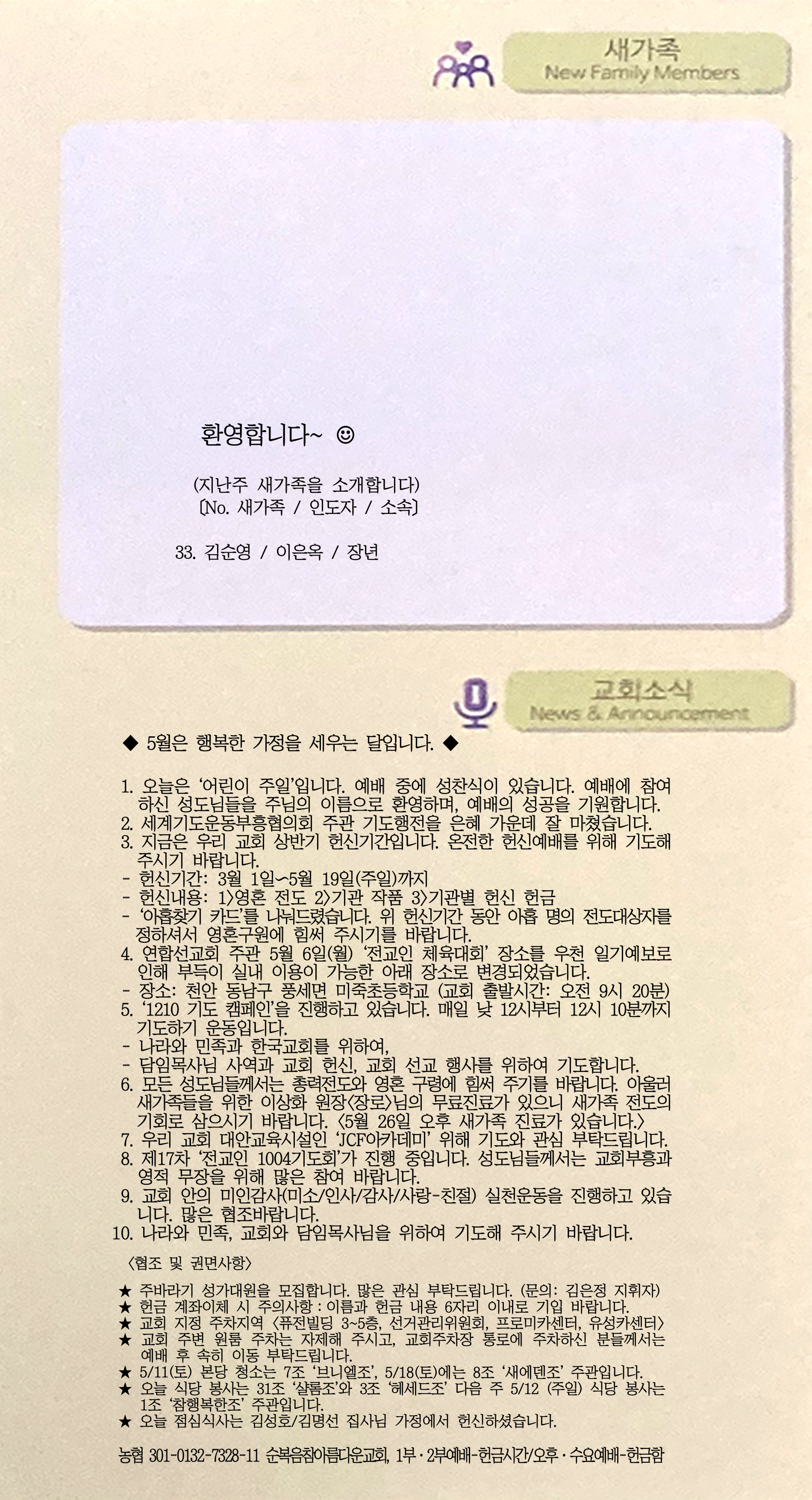 [주 보|교회소식] 2024.05.05