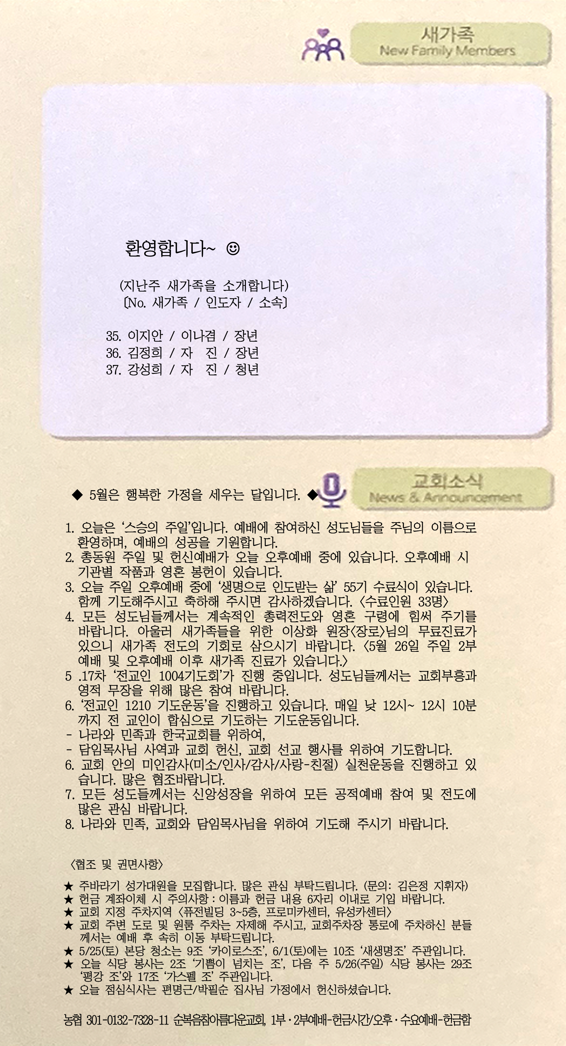 | [주 보|교회소식] 2024.06.02 (0) | 2024.06.01 |