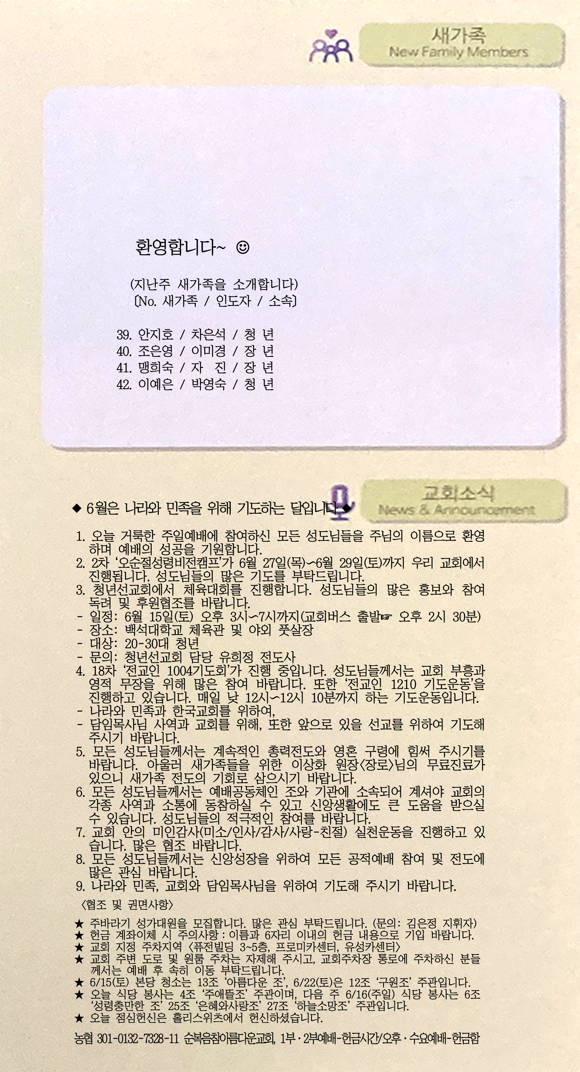 | [주 보|교회소식] 2024.06.16 (0) | 2024.06.15 |