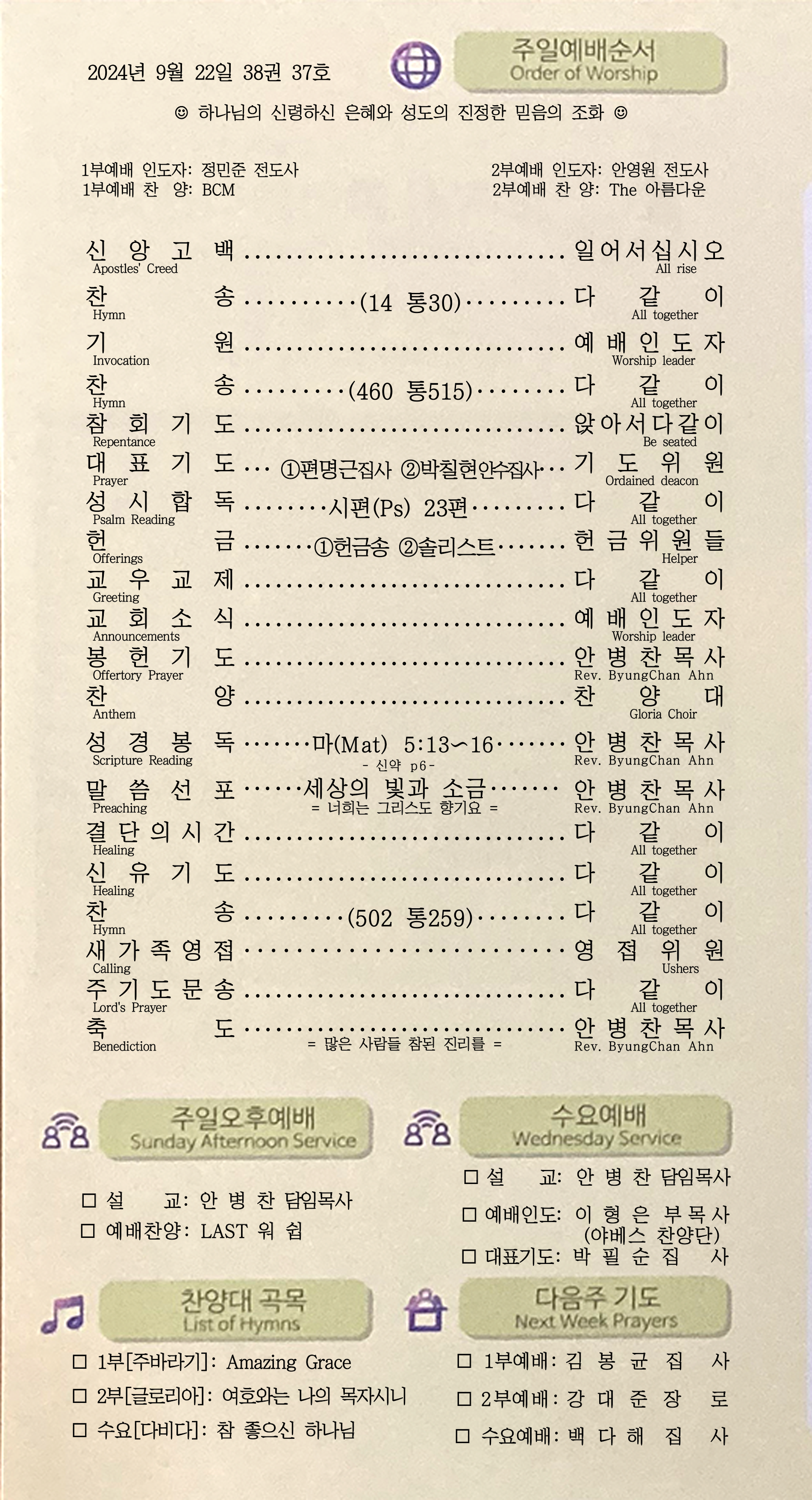 [주 보|교회소식] 2024.09.22