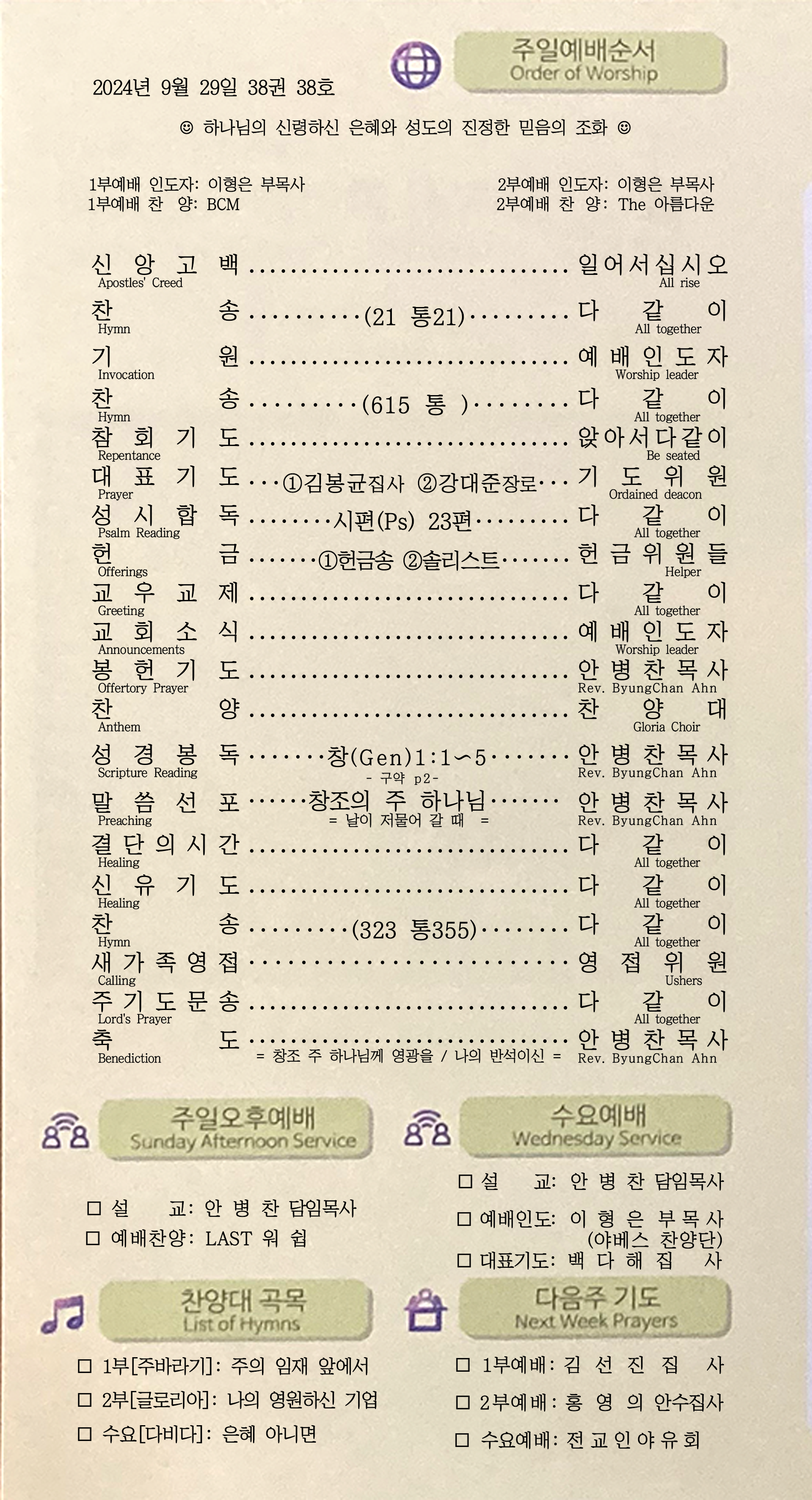 | [주 보|교회소식] 2024.09.08 (0) | 2024.09.08 |