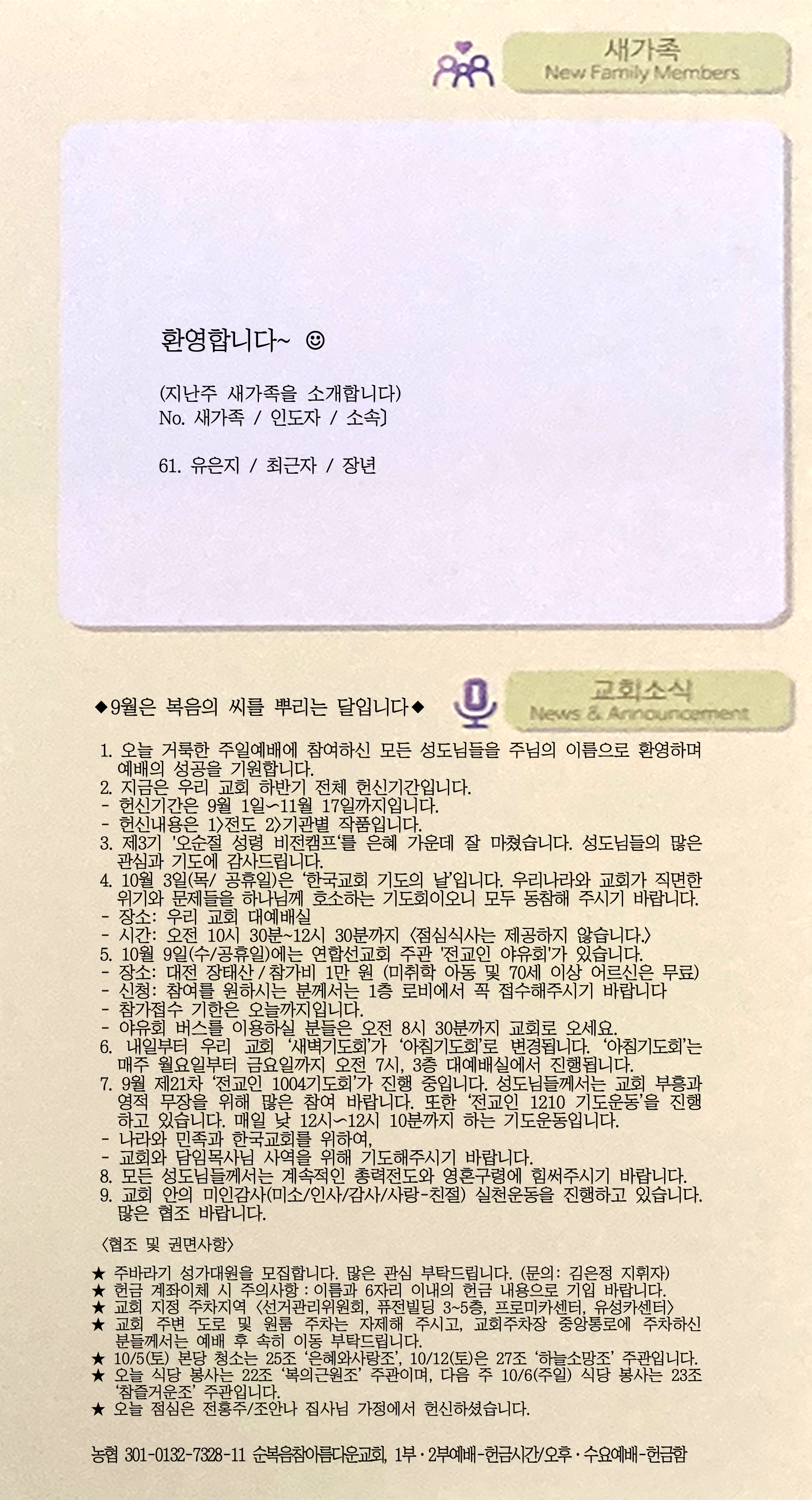 | [주 보|교회소식] 2024.09.22 (0) | 2024.09.21 |