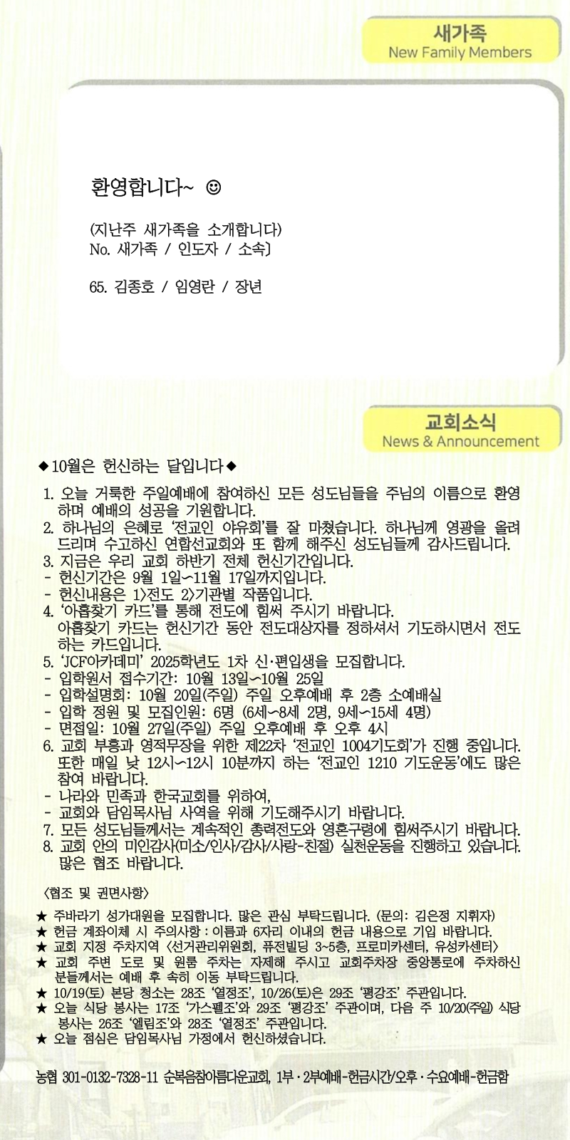 | [주 보|교회소식] 2024.10.20 (0) | 2024.10.19 |