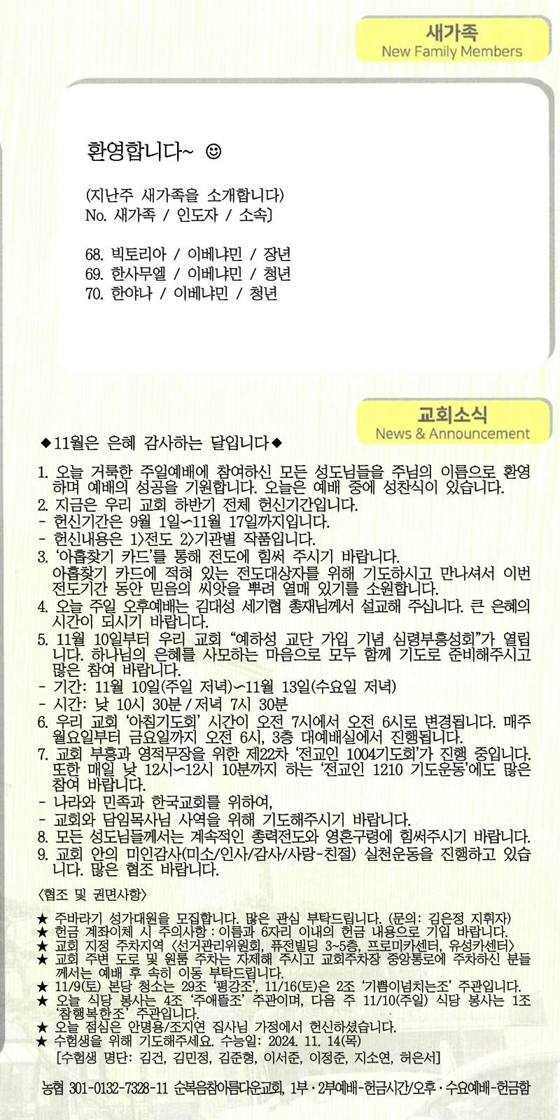 | [주 보|교회소식] 2024.11.17 (0) | 2024.11.16 |