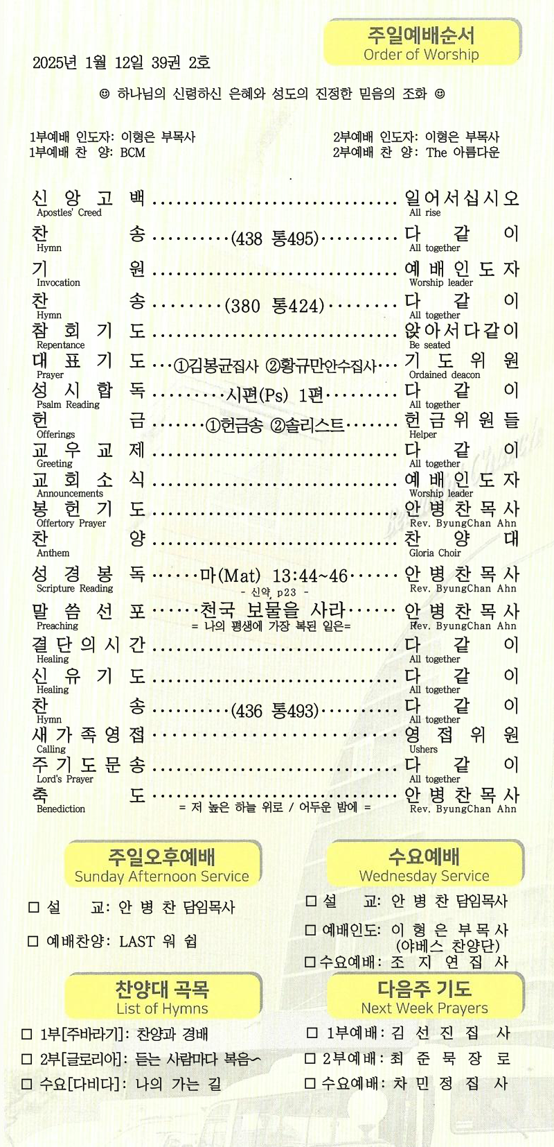 | [주 보|교회소식] 2025.01.19 (0) | 2025.01.19 |