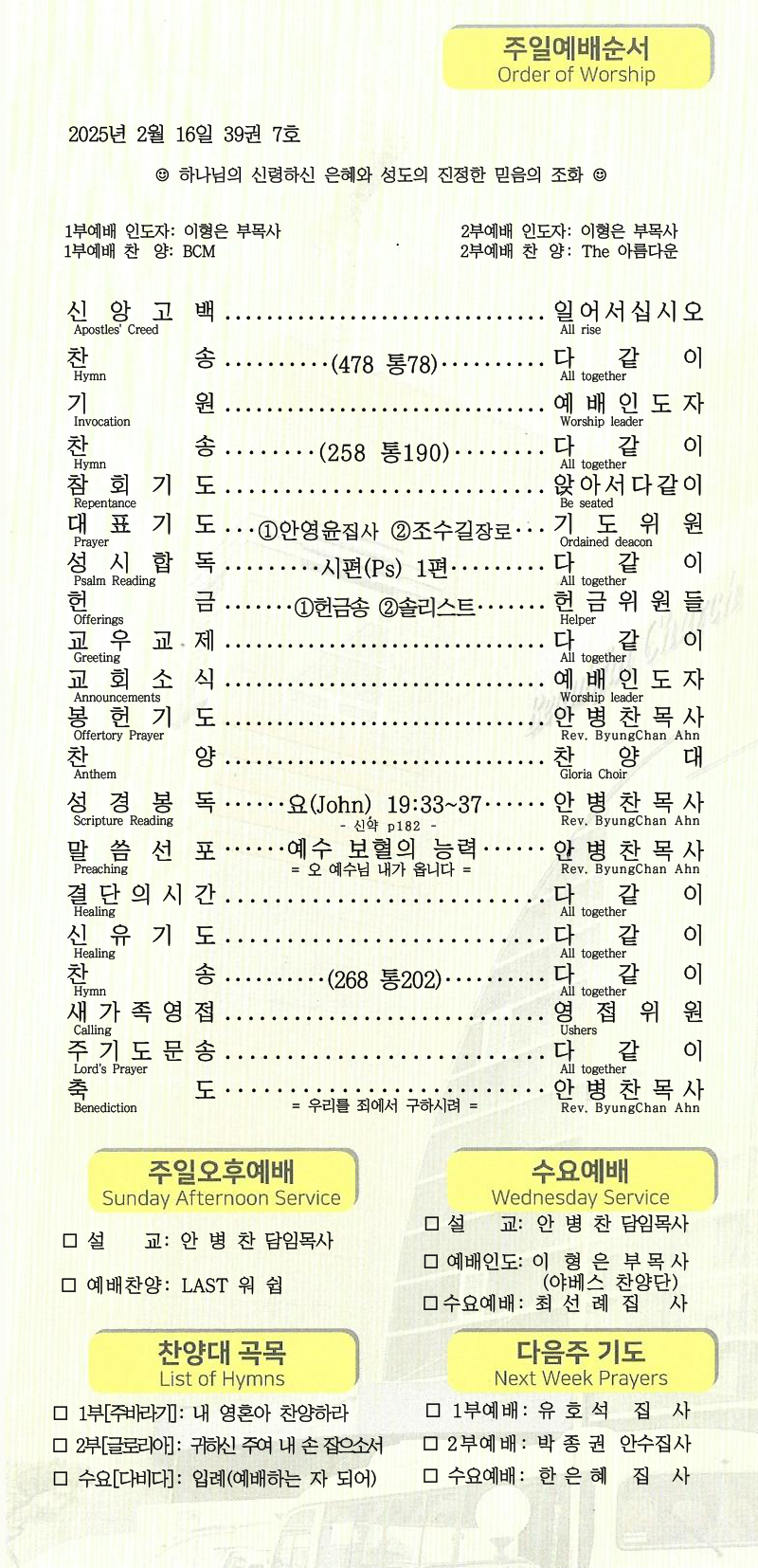 | [주 보|교회소식] 2025.02.23 (0) | 2025.02.23 |
