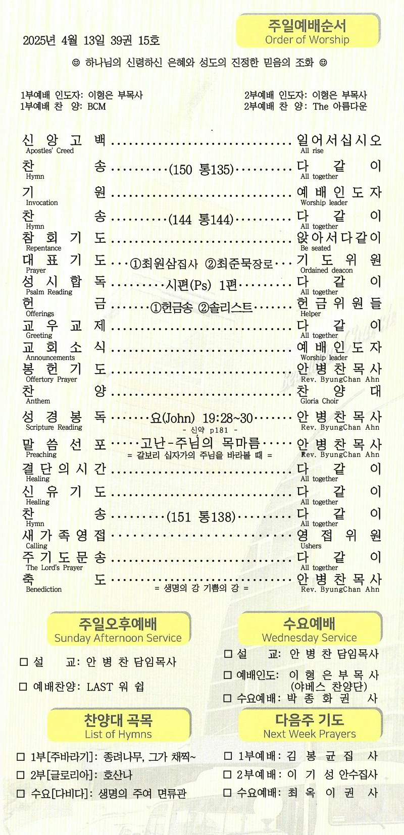 | [주 보|교회소식] 2025.04.27 (0) | 2025.04.26 |