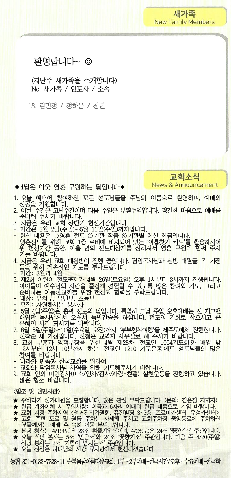 | [주 보|교회소식] 2025.03.30 (0) | 2025.03.30 |