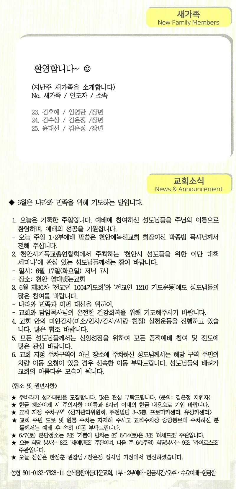 | [주 보|교회소식] 2025.06.15 (0) | 2025.06.15 |