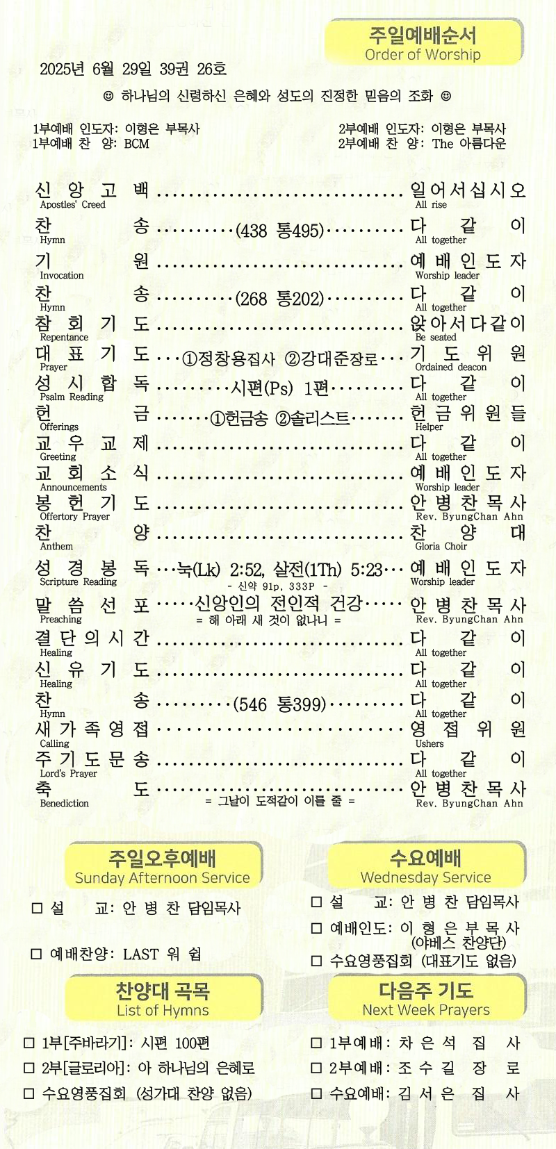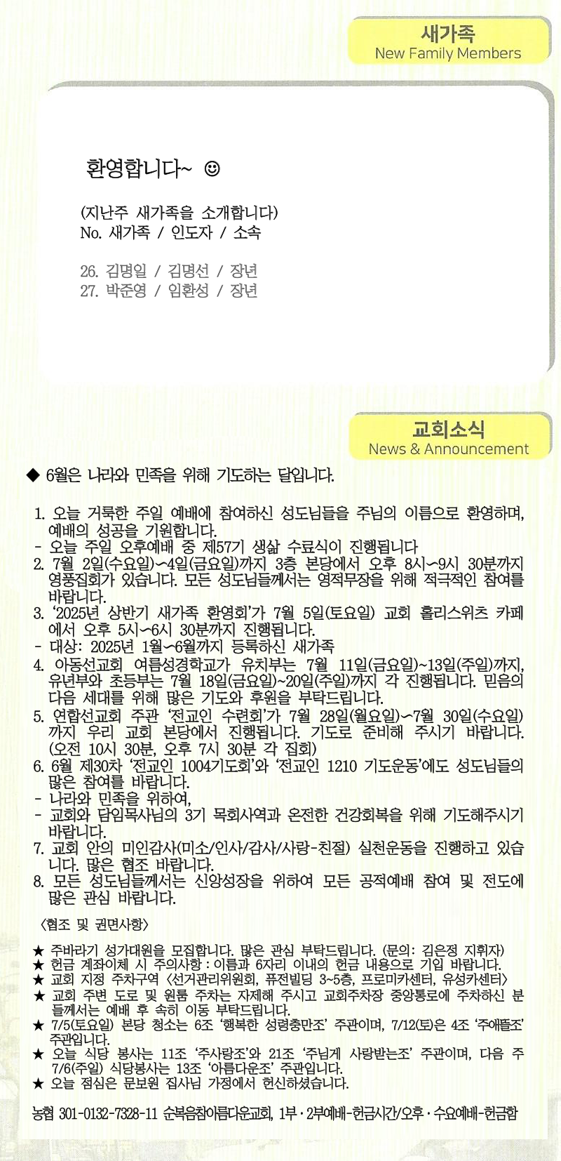 | [주 보|교회소식] 2025.07.06 (0) | 2025.07.06 |