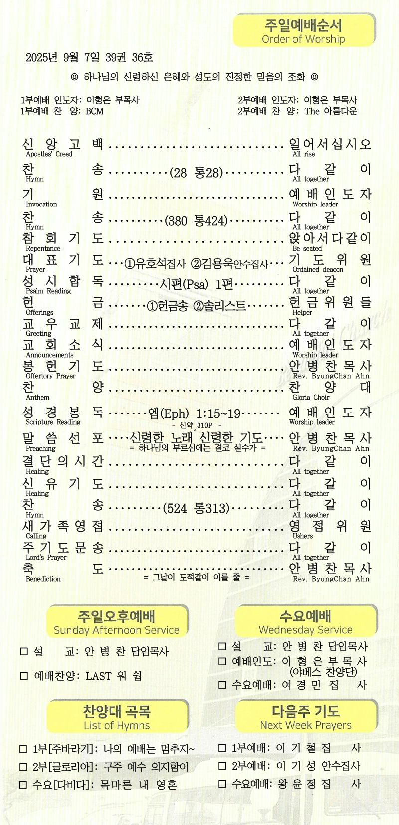 | [주 보|교회소식] 2025.09.14 (0) | 2025.09.14 |
