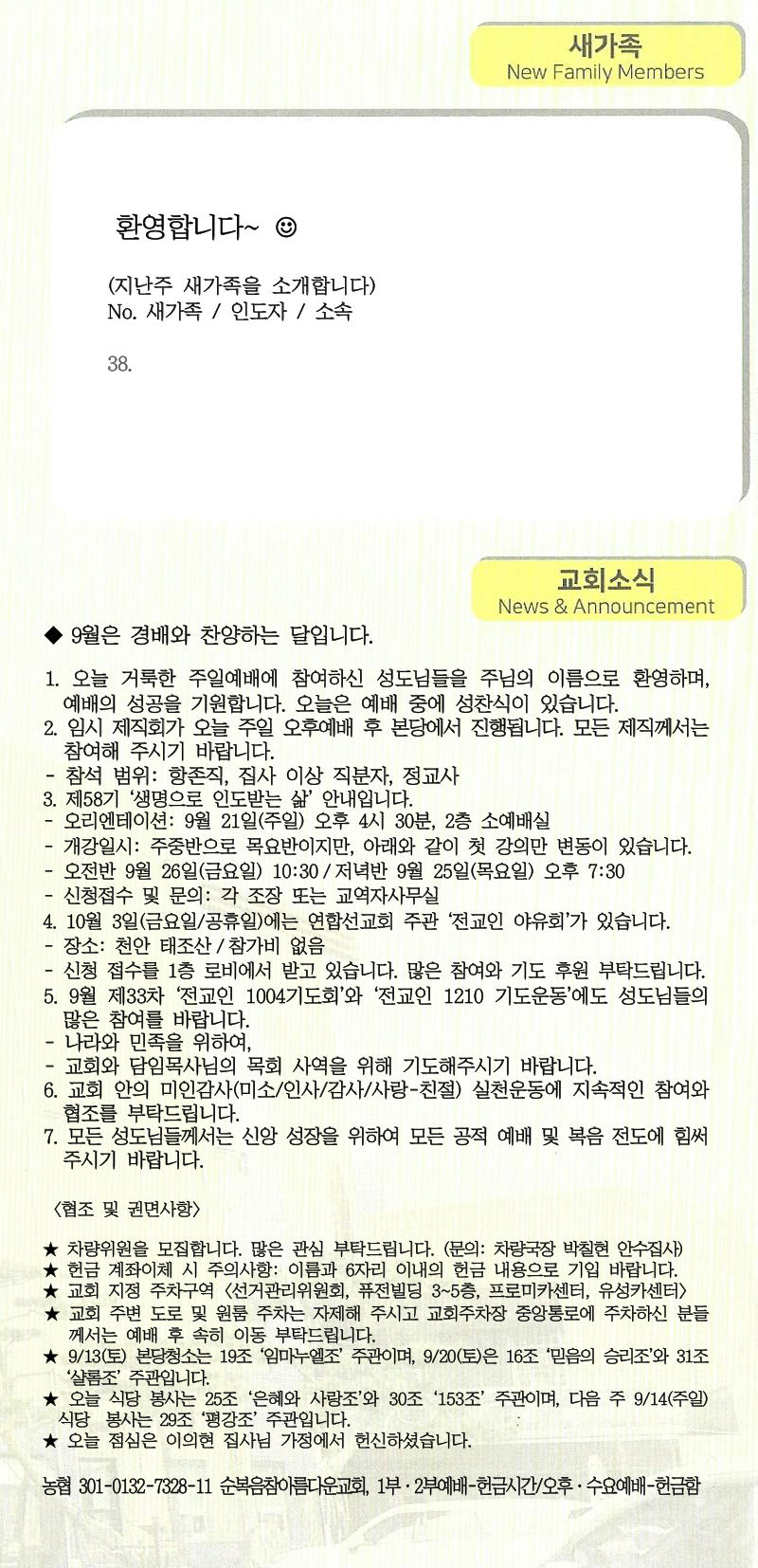 | [주 보|교회소식] 2025.09.21 (0) | 2025.09.21 |