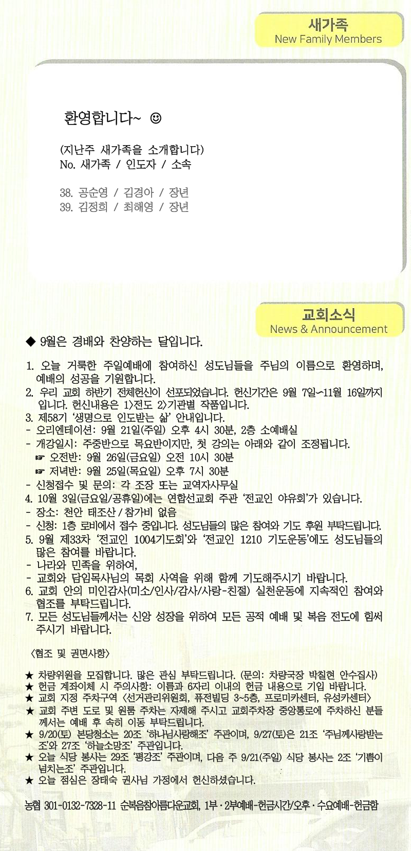 [주 보|교회소식] 2025.09.14