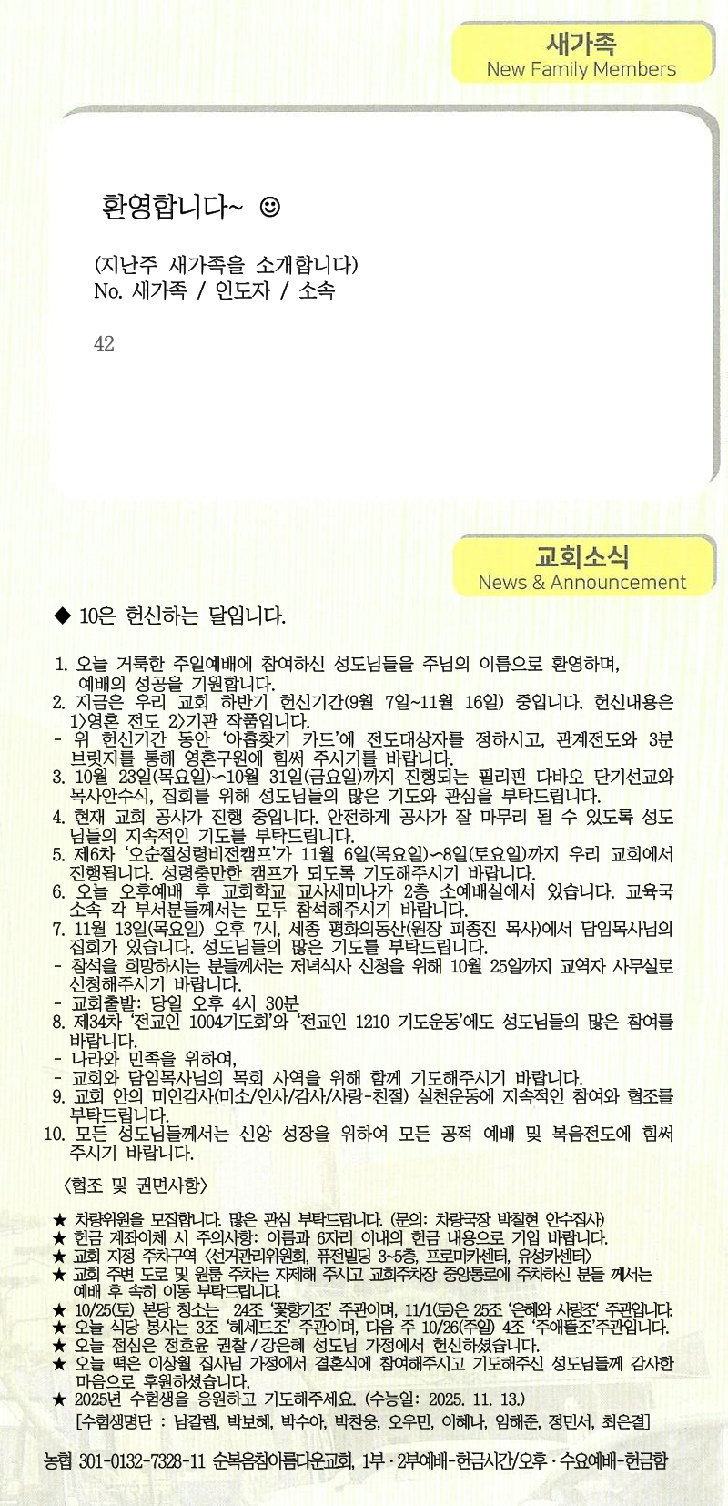| [주 보|교회소식] 2025.10.12 (0) | 2025.10.12 |