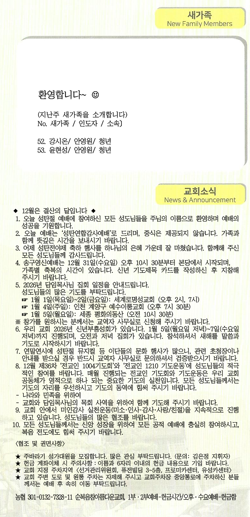 | [주 보|교회소식] 2025.12.28 (0) | 2026.01.04 |
