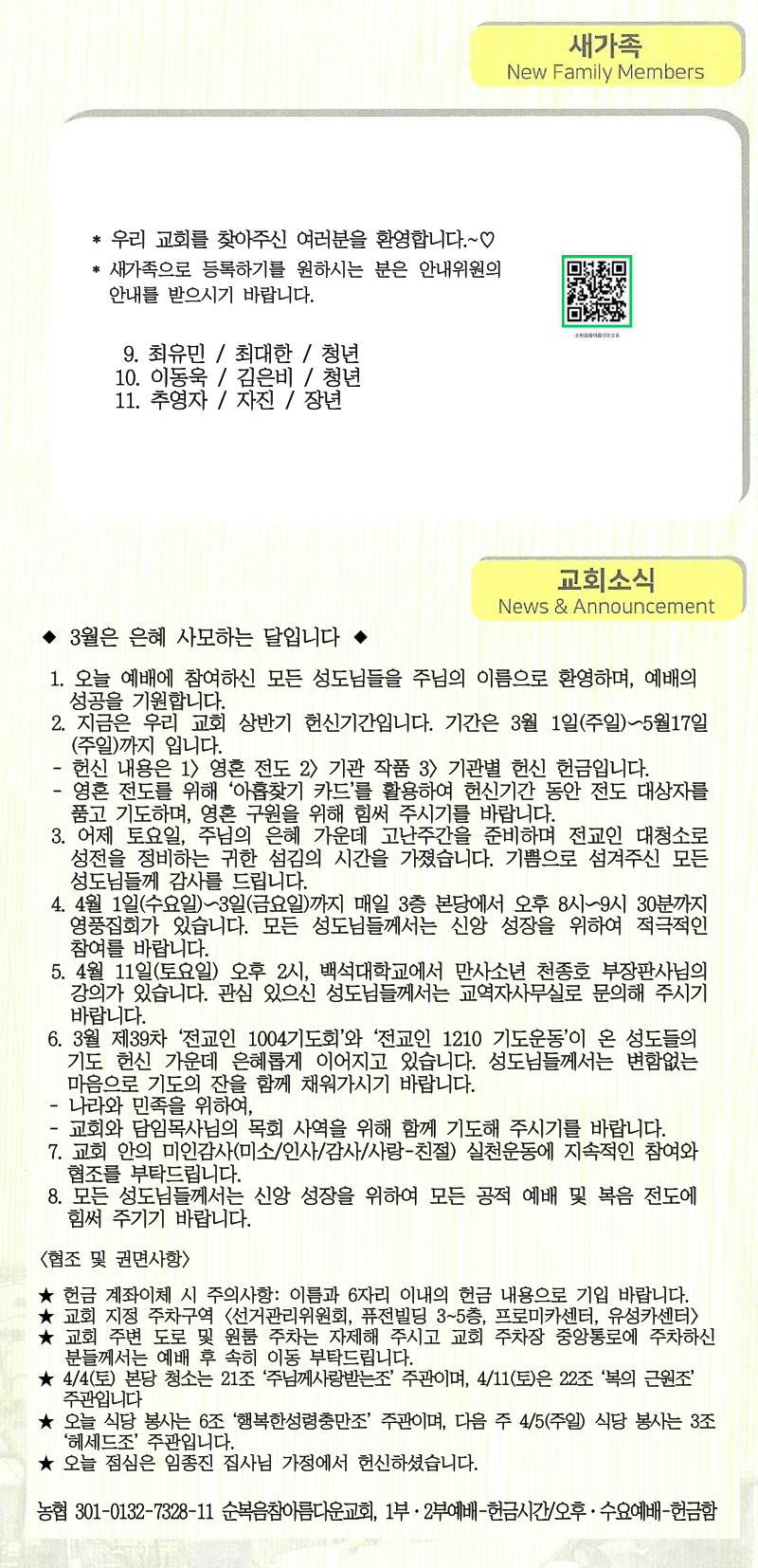 | [주 보|교회소식] 2026.03.01 (0) | 2026.03.08 |